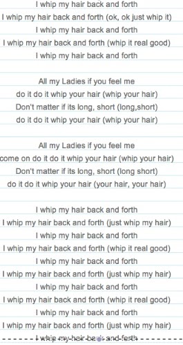 Do it do it whip your hair Whip your hair All my ladies if you feel it. I whip my hair back and forth whip it real good I whip. I also didnt understand what kind of.